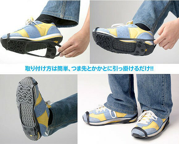 その他急な積雪や、凍結でツルツルの路面...出勤時の革靴にもサッとはめれば転ばない!ワンタッチで冬靴に変身。
