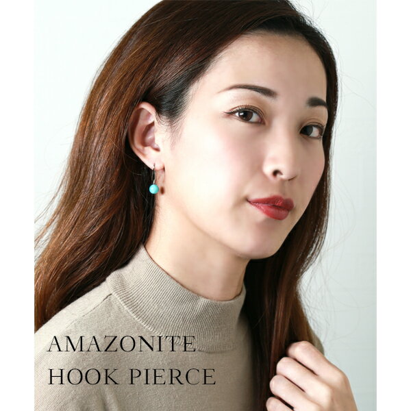 ピアス 金属アレルギー対応 ピアス セカンドピアス ファーストピアス メンズピアス フック ウイングフック 揺れる ロング ステンレス 316L ピアス 両耳用 天然石 アマゾナイト 丸玉 プラチナ ホワイトゴールド 色